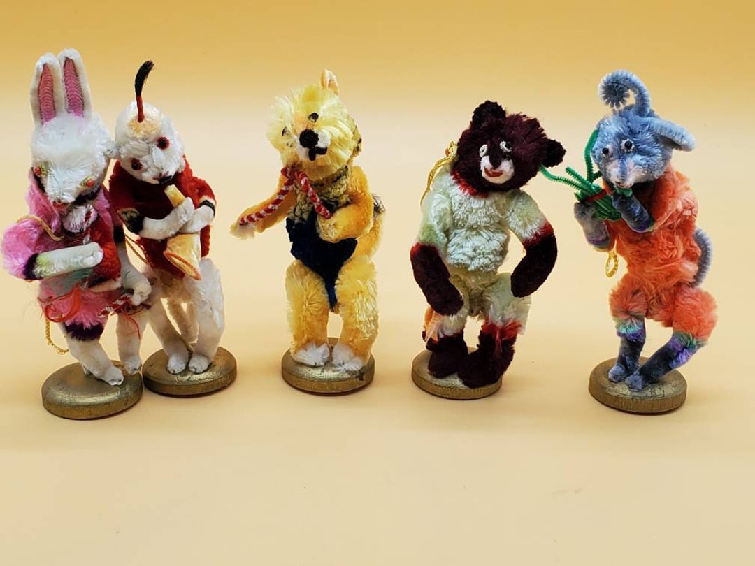 Vintage Chenille Pipe Cleaner Animal Ornaments Lot Of 5 Etsy Uk
