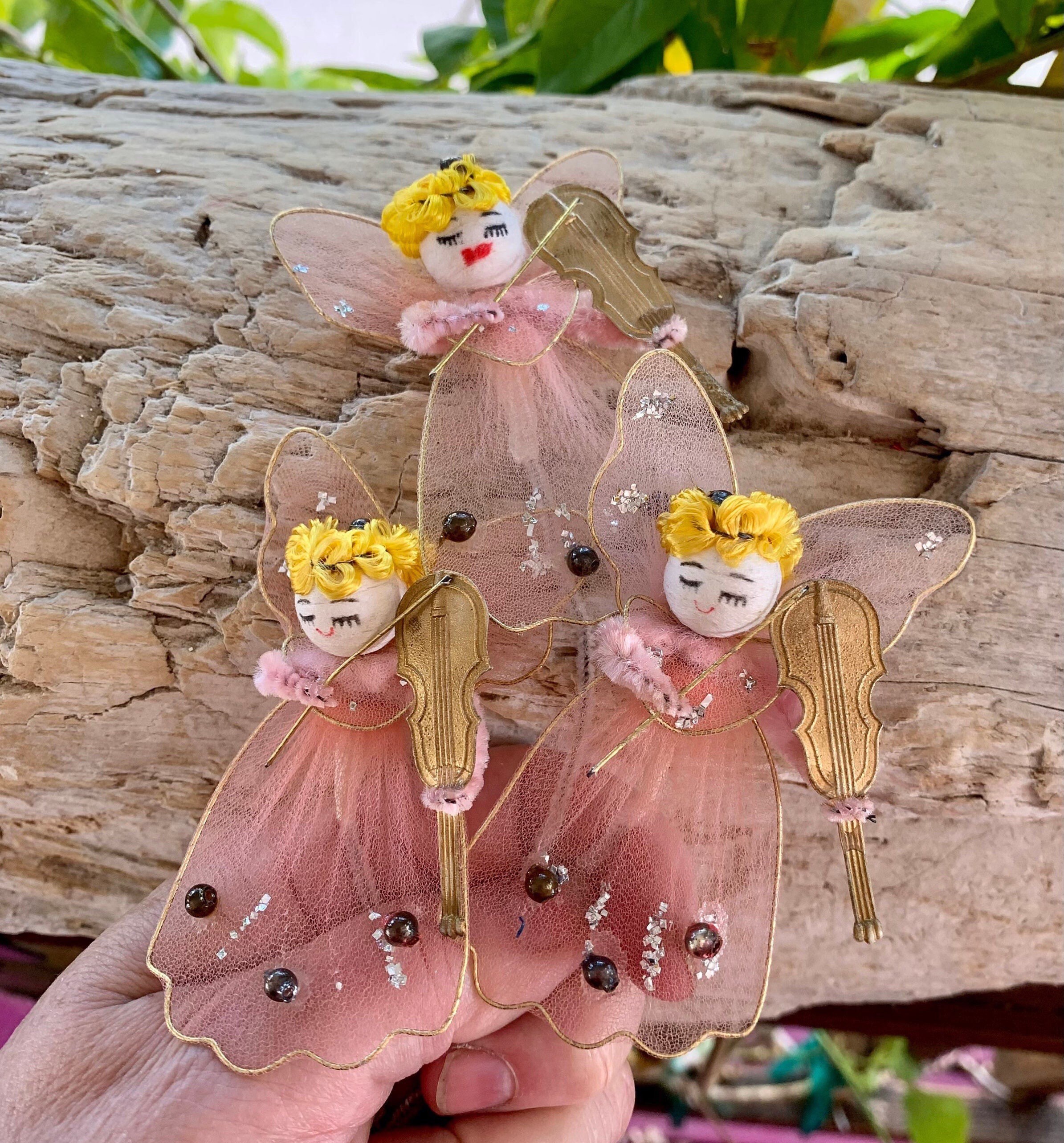 Vintage Pink Tulle Angel Christmas Ornament Musical Angel 1950 Etsy Uk